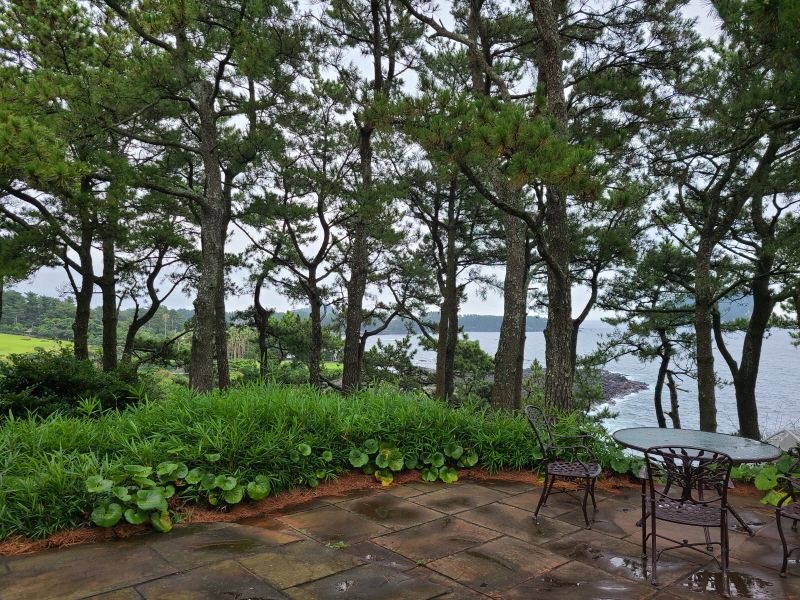 카페로 들어가는 길은 야자수가 울창하고 넓은 정원이 있어서 산책하기도 좋습니다. 카페 안에는 큰 창으로 둘러싸여 있어서 바다를 바라보며 커피를 마실 수 있고, 야외 테라스도 있어서 날씨 좋은 날에는 바람을 쐬며 즐길 수 있습니다. 포토존도 많아서 사진 찍기 좋습니다. 저는 남편과 함께 카페 입구에서부터 내부까지 사진을 많이 찍었습니다. 너무 예쁜 곳이라서 사진 한 장 한 장이 다 인생샷이었습니다.