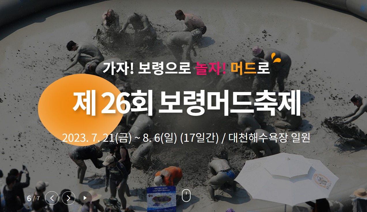 이상으로 2023년 제26회 보령머드축제를 소개하였습니다. 보령머드축제는 놓치면 후회할 여름의 대명사로, 머드체험과 다양한 공연, 에어쇼 등을 즐길 수 있는 축제입니다. 축제 기간은 7월 21일부터 8월 6일까지이며, 축제장은 대천해수욕장과 머드광장입니다. 축제홈페이지에서는 자세한 정보와 소식을 확인하실 수 있습니다. 여러분의 많은 관심과 참여를 부탁드립니다. 보령머드축제에서 즐거운 시간 보내시길 바랍니다.