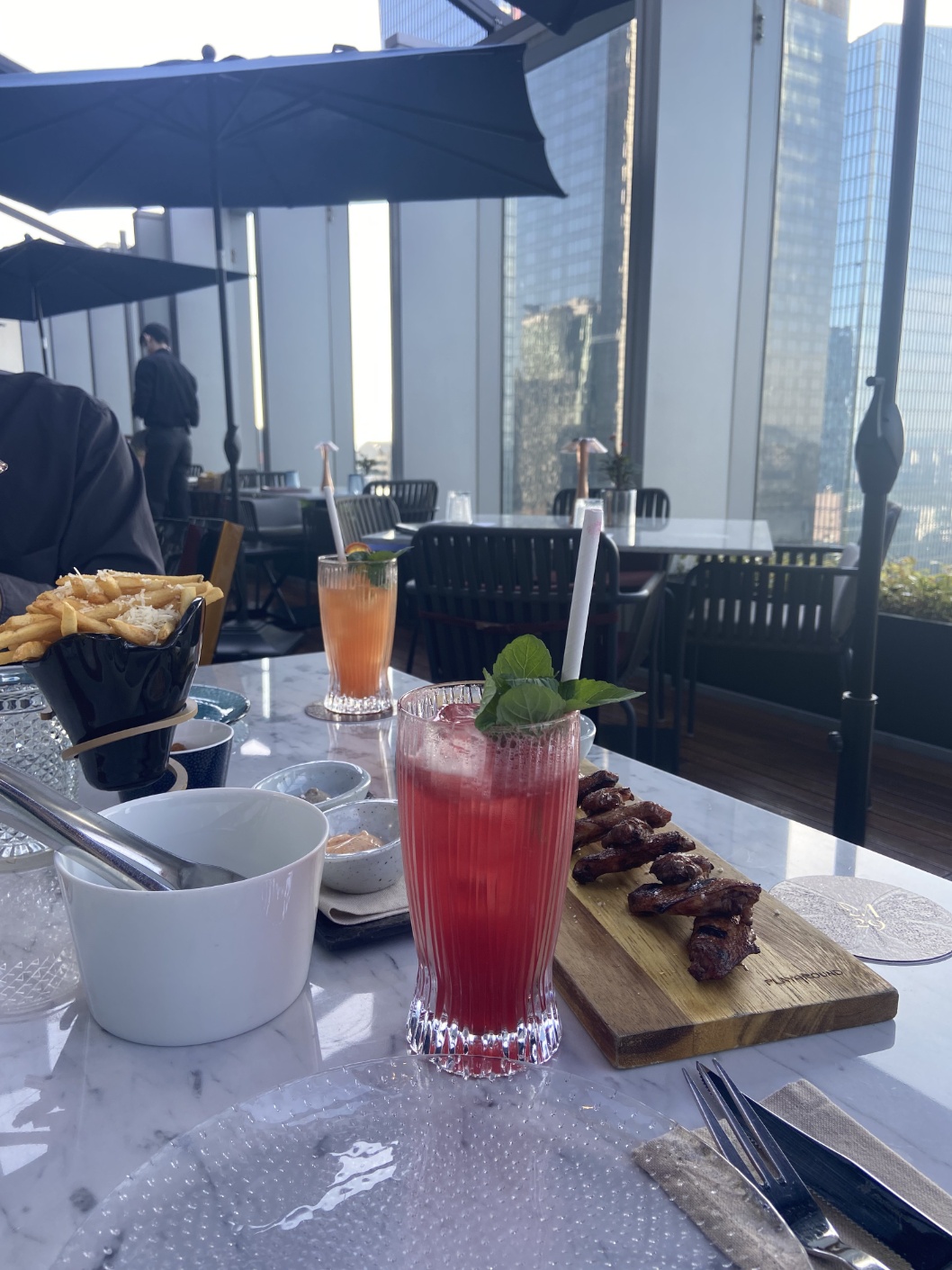 페어몬트 m29 루프탑 라운지바에서 안주로 감자튀김, 트러플 버터 팝콘, 치즈 플래터 등을 즐길 수 있어요.