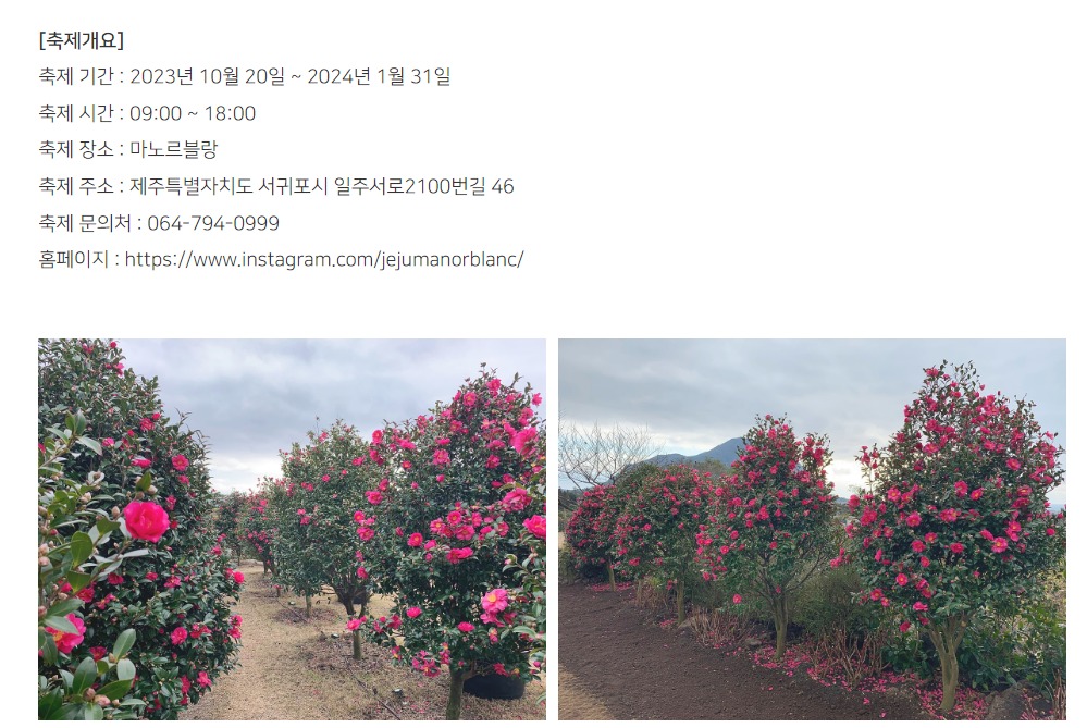 마노르블랑 동백꽃 감귤체험 축제 기본정보
