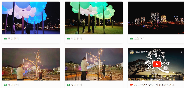 - 전문 사진작가가 찍어주는 인생샷 체험도 할 수 있습니다. 사진작가는 관람객의 희망에 따라 다양한 각도와 포즈로 솔빛축제의 분위기를 담아줍니다. 사진은 즉시 인화되어 관람객에게 제공되며 소정의 비용이 부과됩니다.
