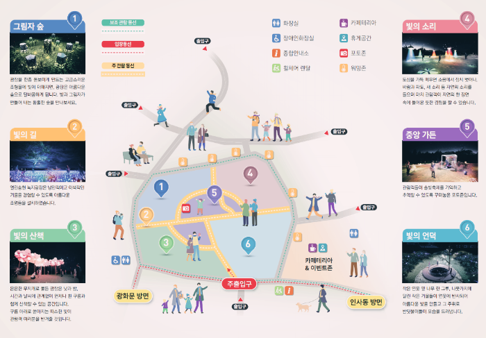 중앙가든에서는 솔빛축제의 빛과 자연을 만끽하고, 사진과 기념품으로 추억을 남길 수 있습니다. 중앙가든은 송현동 문화와 예술을 알리고, 지역사회와 소통하는 공간입니다.