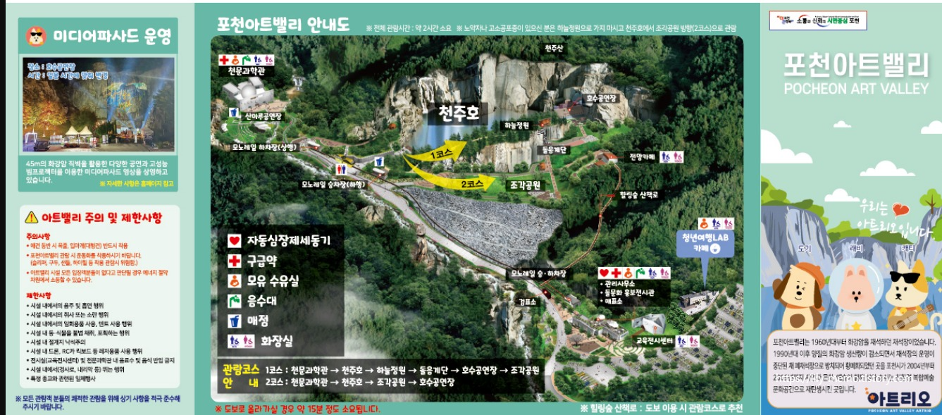 이상으로 포천아트밸리에 대한 소개와 후기를 마치겠습니다. 포천아트밸리는 자연과 예술이 어우러진 곳으로, 가족이나 친구들과 함께 방문하면 좋을 것 같습니다. 포천아트밸리에서 특별한 추억을 만들어보세요.