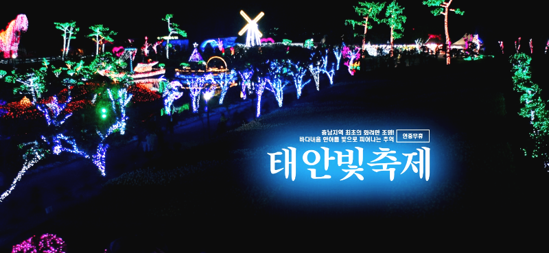 태안 빛축제는 '바다내음 한아름 빛으로 피어나는 추억’이라는 주제로, 600만 구의 LED 전구로 만든 화려하고 다양한 빛 조형물들이 축제장을 물들입니다. 바다와 꽃으로 각인된 태안의 정적인 이미지를 개선하고자 LED 불빛을 이용한 동적인 모습과 야간 볼거리를 제공합니다. 축제장에는 25개의 포토존이 있어서 사진을 찍거나 즐길 수 있습니다. 또한, 빛의 터널, 빛의 분수쇼, 빛으로 그려진 그림 등의 이벤트도 있습니다.