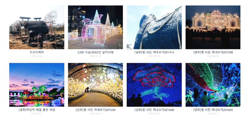 - 꽃빛 터널 : 꽃 모양의 LED 튜브로 만든 터널로, 꽃밭을 걷는 듯한 느낌이 있습니다.