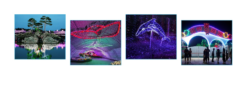 - 물결 터널 : 파란색과 녹색의 LED 튜브로 만든 터널로, 물결이 흐르는 듯한 움직임이 있습니다.