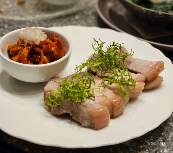메뉴가 정말 끊임없이 나와서 이미 배가 너무 부른 상태였는데 겨울조개 세트랑 한돈 오겹이랑 피문어 샐러드까지 정말 맛없는 메뉴가 하나도 없어서 진짜 감동할 만한 한남동 맛집이었던 것 같습니다.