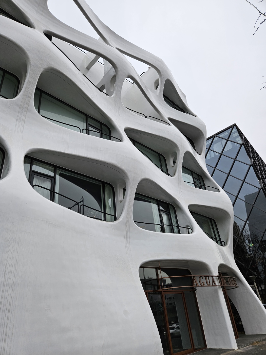 어물전청 한남은 한남동에 위치한 가우디 양식을 떠 올리게 하는 건물의 2층에 있습니다. 위치는 나인원 한남 맞은편이라 지하철을 이용한다면 조금 애매하긴 합니다. 6호선 한강진역이나 경의 중앙선 한남역에 내려서 많이 걸어야 해요.