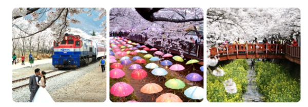 '로망스다리'로 불리는 여좌천 주변이 벚꽃의 아름답게 터널을 이룹니다. 경화역 주변의 철길과 안민고개의 십리꽃길은 산책과 드라이브를 위한 최적의 장소로 벚꽃이 만개하는 시기에는 그야말로 낭만이 넘치는 곳입니다.