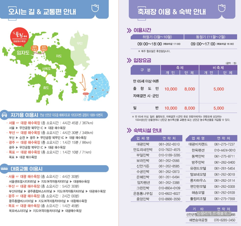 입장료는 개인의 경우 10,000원의 입장료가 부과되며 단체는 인당 8,000원으로 할인 혜택을 받을 수 있습니다. 비행사 기간에는 입장료가 5,000원으로 줄어들어 행사가 아닌 시기에도 임자도의 자연을 저렴한 가격에 즐길 수 있는 기회를 제공합니다.