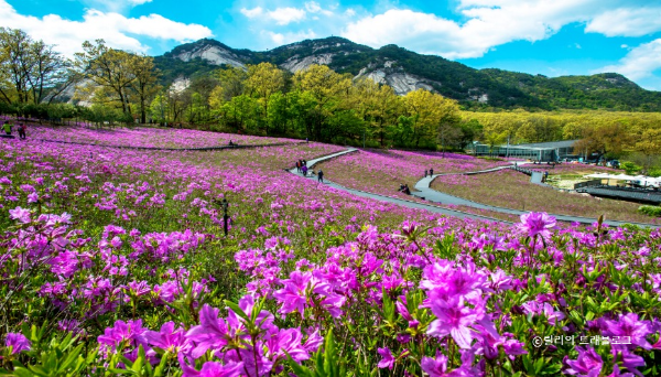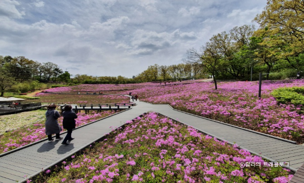 철쭉동산의 꽃은 봄의 전령사로 그 존재만으로도 사람들에게 봄이 왔음을 알립니다. 다양한 색상으로 맞이하며 분홍색, 빨간색, 하얀색의 조화는 한 폭의 그림과 같습니다.