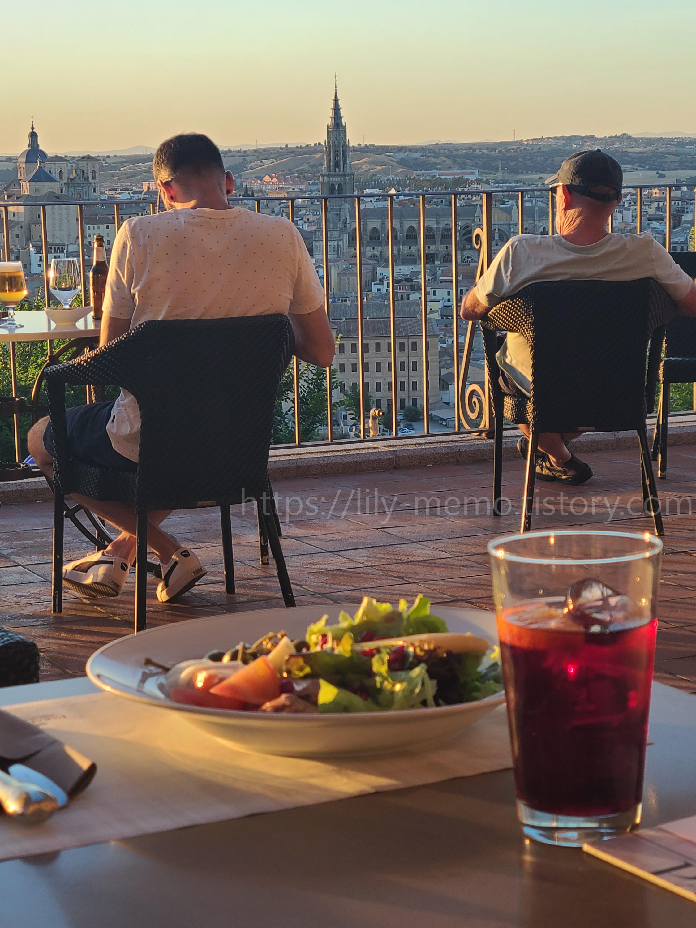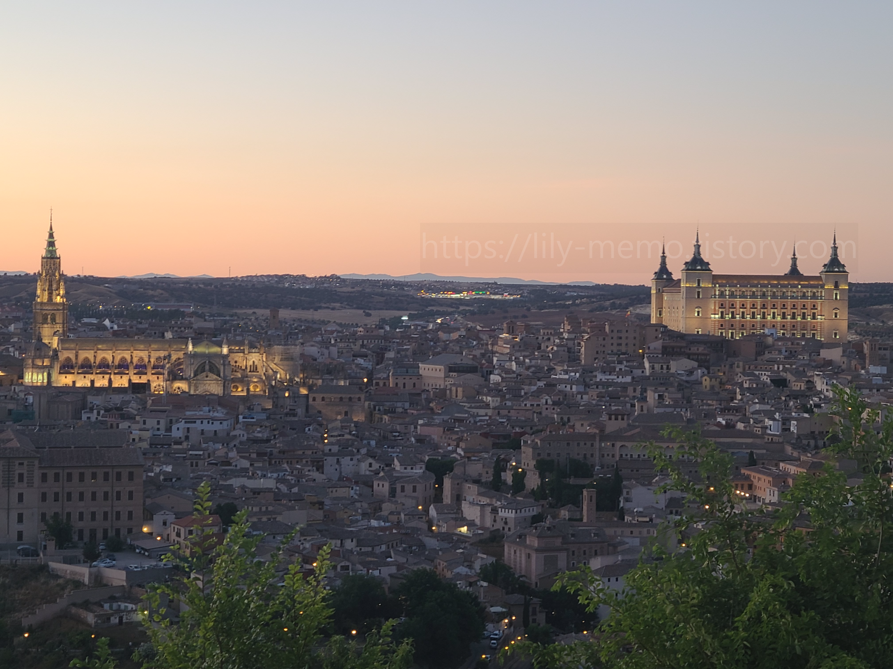 호텔에서 본 도시의 야경은 정말 멋졌습니다. 호텔의 옥상 테라스에서는 톨레도의 전경을 한눈에 볼 수 있었습니다. 해가 진 후에는 도시가 환하게 빛나는 모습을 보며 로맨틱한 분위기를 즐길 수 있었습니다. 특히 대성당이나 알카사르 같은 유명한 건물들이 밤하늘에 반짝이는 모습이 인상적이었습니다.