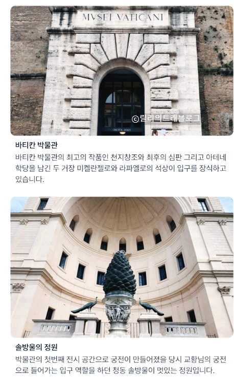 -사전 예약: 바티칸 박물관은 평일과 주말 모두 많은 방문객이 찾는 명소이기 때문에 사전 예약을 통해 대기 시간을 줄이는 것이 좋습니다.