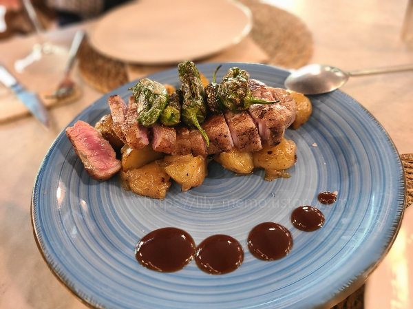 갈리시아식 파이는 다양한 재료를 넣고 튀김 반죽으로 만든 것으로 저는 해산물과 채소가 들어간 것을 골랐습니다. 반죽이 쫄깃하고 부드럽고 재료가 신선해서 맛있었습니다. 가리비에 망고 오일 요리는 식당의 시그니처 메뉴였습니다.