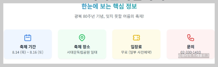 | 주요 내용 | 광복 80주년 기념 공연, 전시, 시민 참여 프로그램 등 |