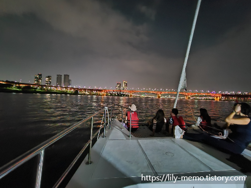 잠원 한강의 일몰과 야경을 감상할 수 있다는 점입니다. 마린모나크는 잠원지구에서 출발하여 성수대교까지 왕복하는 코스를 운영하고 있습니다. 이 코스에서는 한강의 다리들과 서울의 랜드마크들을 볼 수 있습니다. 특히 야간에는 한강의 야경이 정말 아름답습니다. 반짝이는 불빛들과 반사되는 물결이 인상적입니다.