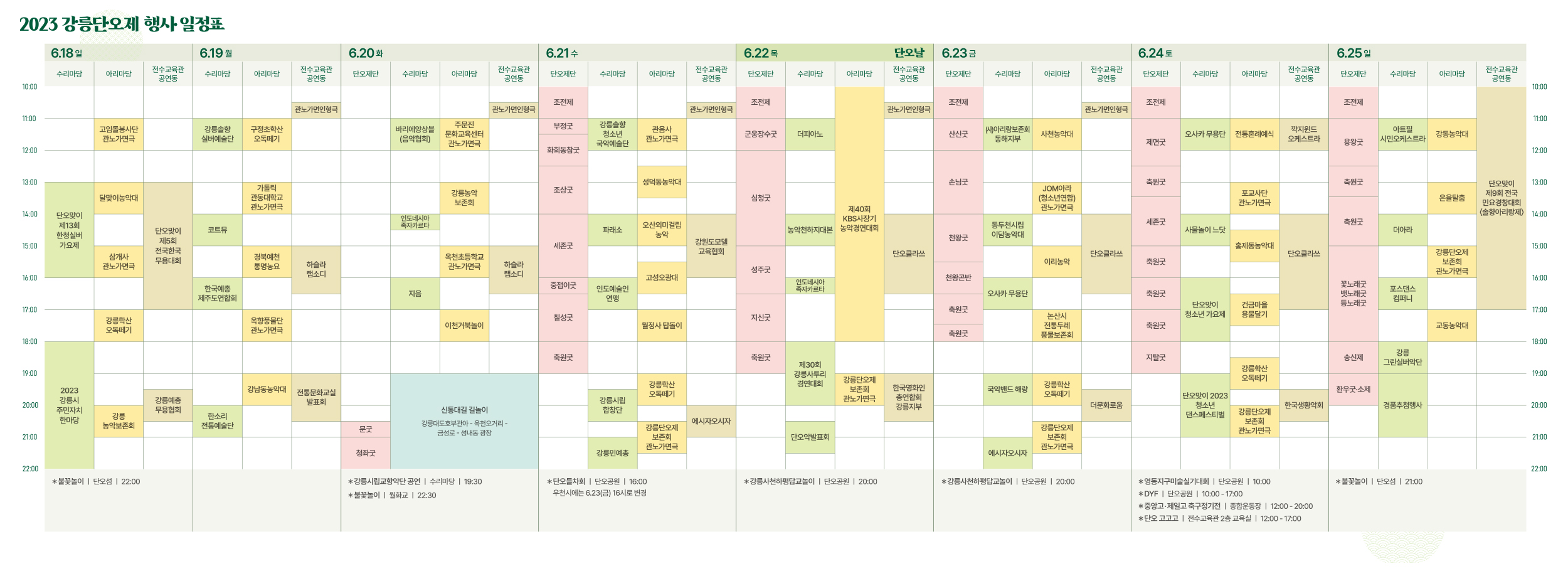 - 6월 23일 (금) : 강릉사천하평답교놀이 (단오공원, 20:00)