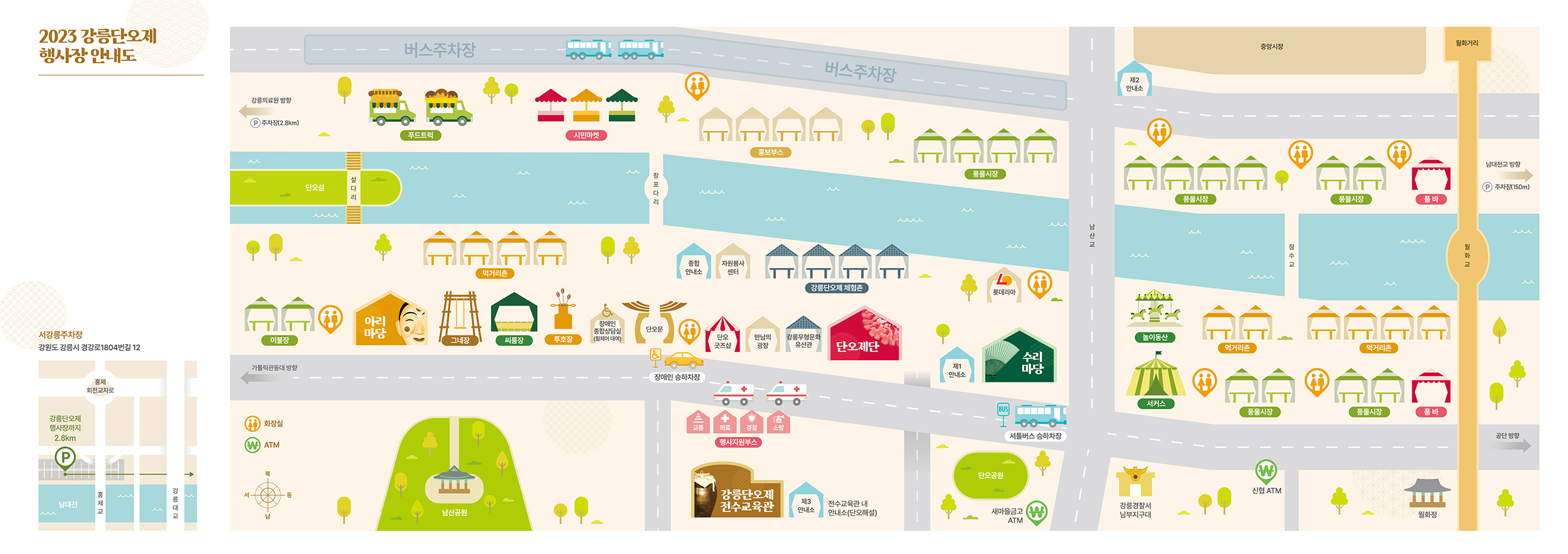 - 강릉 단오제는 많은 인파와 차량이 몰리는 축제입니다. 대중교통을 이용하시거나 미리 주차장을 확인하시는 것이 좋습니다.